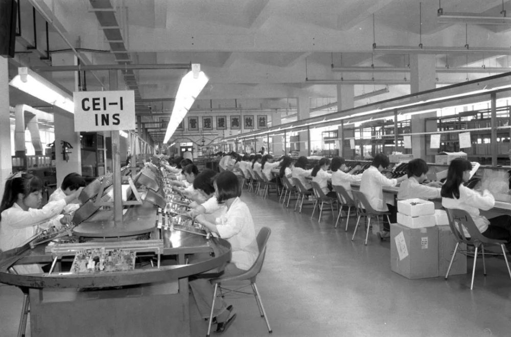 廈門特區(qū)湖里工業(yè)區(qū)廈華電子有限公司彩色電視機(jī)廠基板裝配生產(chǎn)線。新華社記者 李開遠(yuǎn) 攝(1987年11月2日)