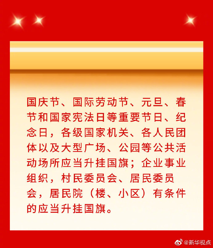 17日閉幕的十三屆全國人大常委會(huì)第二十二次會(huì)議對(duì)國旗法、國徽法進(jìn)行了修改。新修改的這兩部法律將于2021年1月1日起施行。修改后的法律進(jìn)一步明確了升掛國旗和懸掛國徽的場合,完善了國旗、國徽尺度,對(duì)損害國旗尊嚴(yán)的行為作出禁止性規(guī)定,可謂亮點(diǎn)頻頻。
