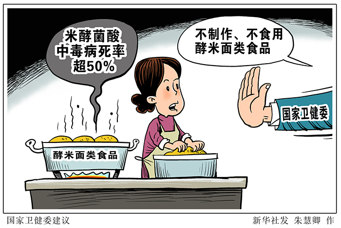 提示指出,酵米面中毒的主要原因是使用了發霉變質的原料,雖然通過挑選新鮮無霉變原料、勤換水能夠減少被致病菌污染的機會,但為保證生命安全,最好的預防措施是不制作、不食用酵米面類食品。