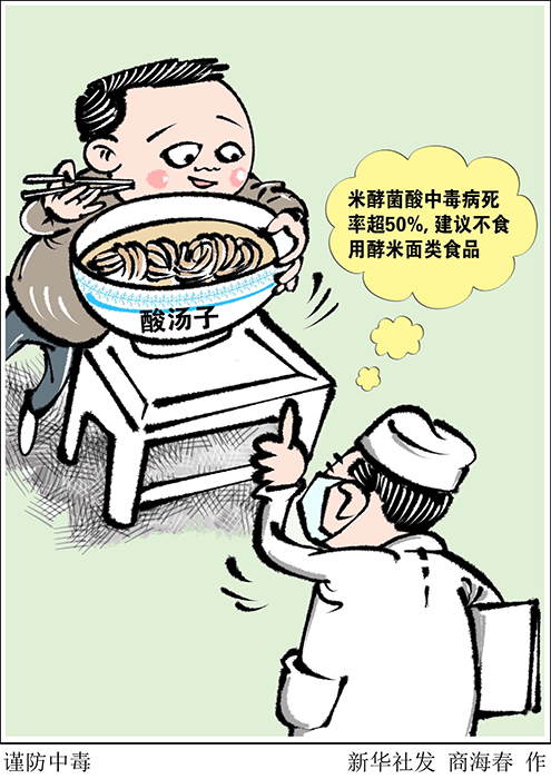 提示指出,北方酸湯子是用玉米水磨發酵后做的一種粗面條樣的酵米面食品。夏秋季節制作發酵米面制品容易被椰毒假單胞菌污染,該菌能產生致命的米酵菌酸,高溫煮沸不能破壞毒性,中毒后沒有特效救治藥物,病死率達50%以上。