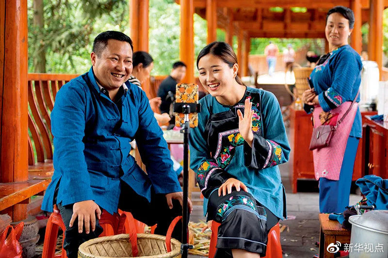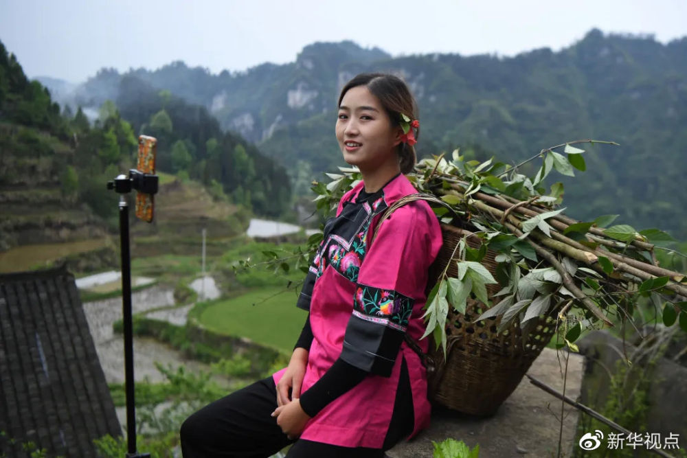 4月23日,在十八洞村拍攝的返鄉創業做直播帶貨成“網紅”的大學生施林嬌 新華社記者薛宇舸 攝