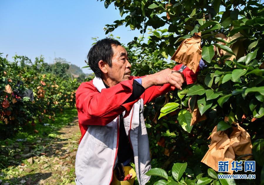 在四川省資陽(yáng)市安岳縣寶森檸檬小鎮(zhèn)世界檸檬品種博覽園,安岳縣檸檬產(chǎn)業(yè)發(fā)展中心主任田再澤在查看檸檬的長(zhǎng)勢(shì)情況(11月11日攝)。新華社記者 周相吉 攝