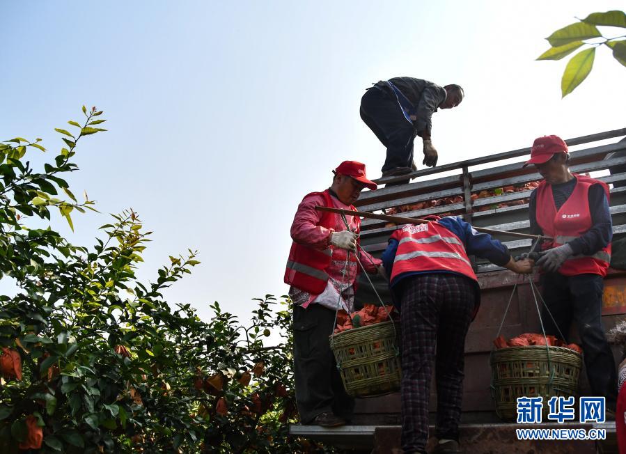 在四川省資陽(yáng)市安岳縣石橋村,果農(nóng)將收獲的檸檬運(yùn)送裝車(11月11日攝)。新華社記者 王曦 攝