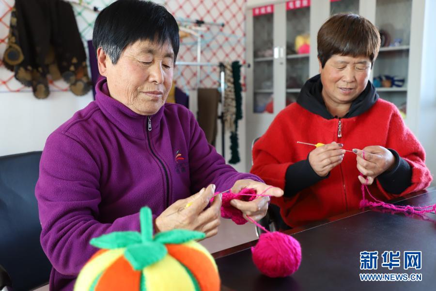 10月29日,在黑龍江省鶴崗市綏濱縣忠仁鎮黎明村的編織工作室,村民們在做手工編織。新華社記者 徐凱鑫 攝