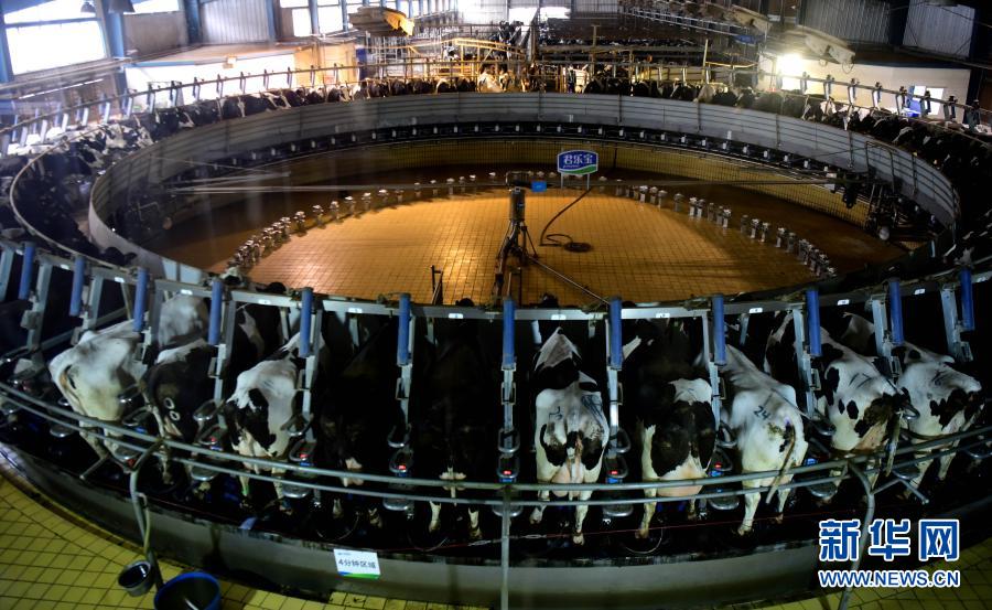 這是河南省駐馬店市正陽(yáng)現(xiàn)代化牧場(chǎng)擠奶車間一角(10月27日攝)。