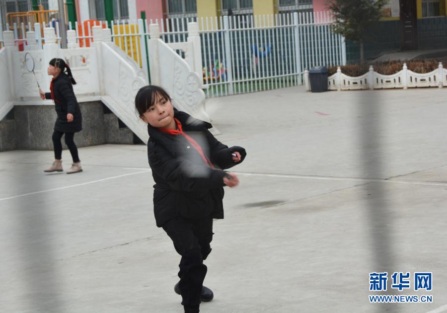 12月1日,在廣河縣三甲集鎮(zhèn)火炬小學(xué)的操場上,馬梅在課間和同學(xué)打羽毛球。新華社記者顏之宏攝