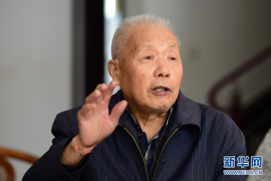 志愿軍老戰士黃治富在家中講述勇救朝鮮落水少年經過(9月26日攝)。新華社發(郭峰 攝)