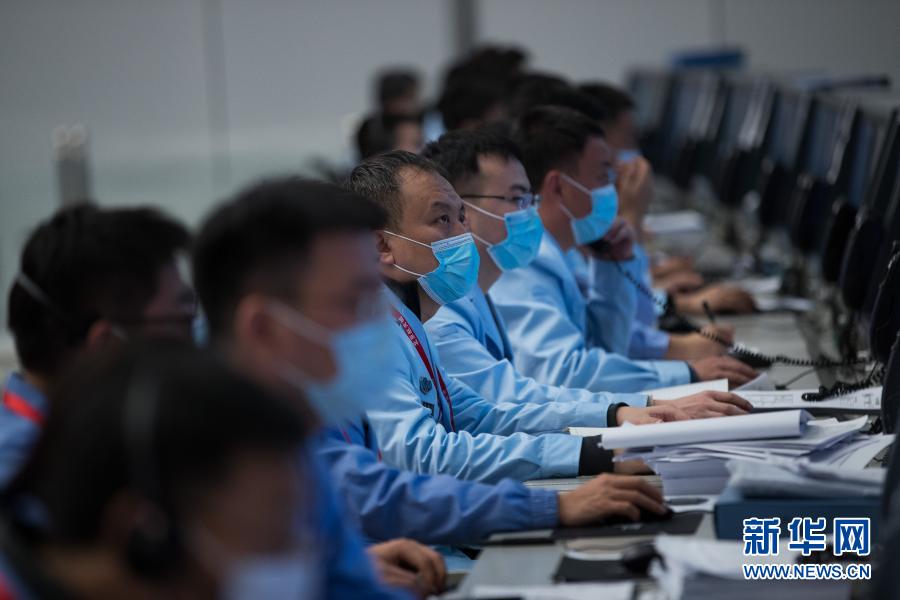 12月6日,航天科技人員在北京航天飛行控制中心指揮大廳監(jiān)測嫦娥五號上升器與軌道器返回器組合體交會對接情況。新華社記者 金立旺攝