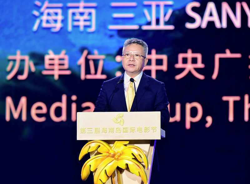 △中宣部副部長、中央廣播電視總臺臺長、第三屆海南島國際電影節組委會主席慎海雄致辭并宣布開幕