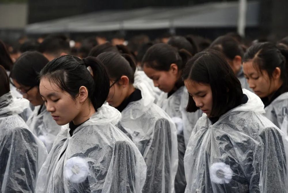 ↑2016年12月13日,學生代表在南京大屠殺死難者國家公祭儀式上默哀。新華社發