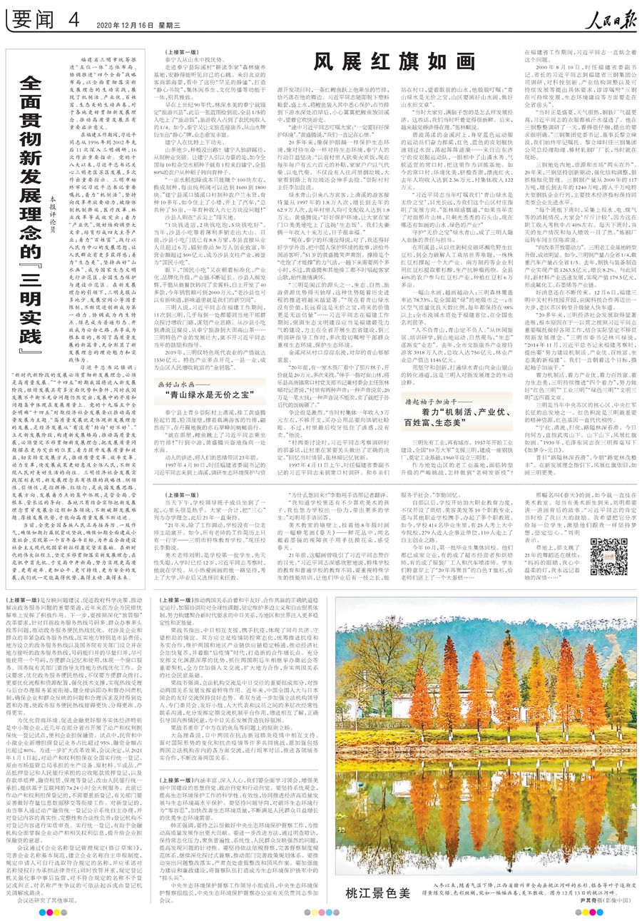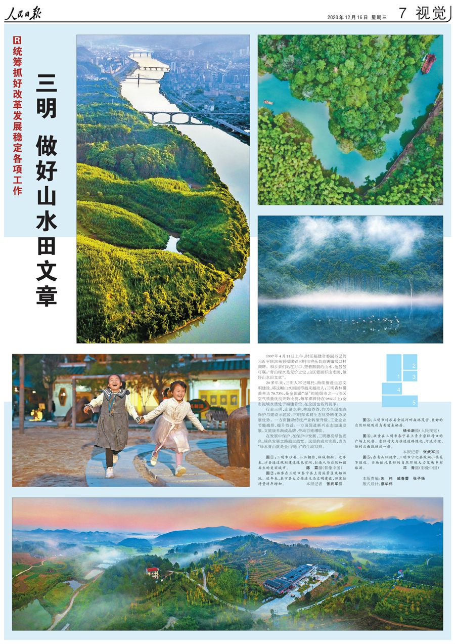 福建省三明市統(tǒng)籌推進(jìn)“五位一體”總體布局、協(xié)調(diào)推進(jìn)“四個(gè)全面”戰(zhàn)略布局,以全面貫徹落實(shí)新發(fā)展理念的生動(dòng)實(shí)踐,展現(xiàn)了機(jī)制活、產(chǎn)業(yè)優(yōu)、百姓富、生態(tài)美的生動(dòng)畫(huà)卷,對(duì)于各地更好貫徹新發(fā)展理念、推動(dòng)高質(zhì)量發(fā)展具有重要啟示意義。今天人民日?qǐng)?bào)推出多篇報(bào)道,刊發(fā)評(píng)論員文章,聚焦三明的探索和實(shí)踐。