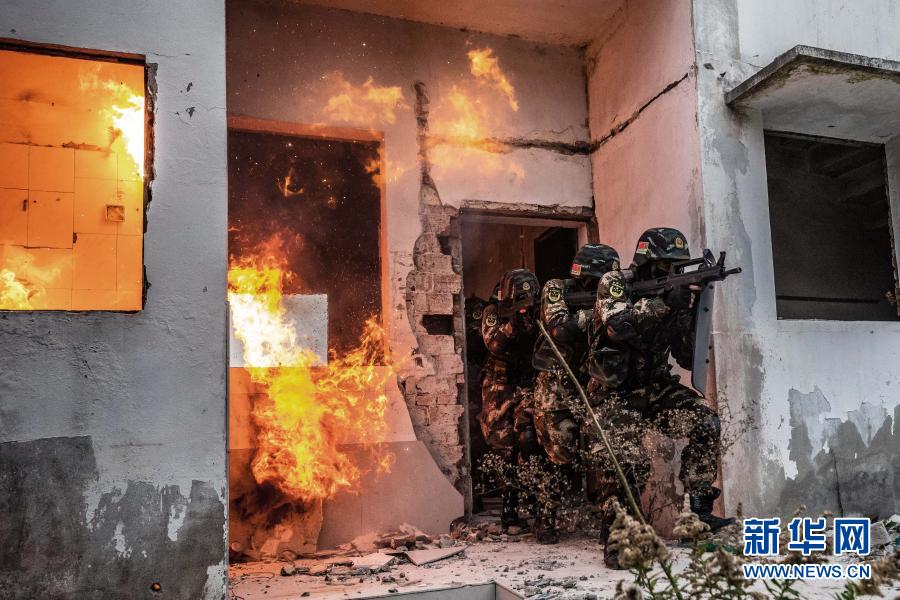 武警第一機動總隊某支隊特戰隊員在進行房間搜索訓練(12月15日攝)。新華社發(常龍 攝)