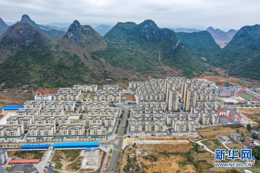 廣西羅城仫佬族自治縣易地扶貧搬遷安置點“仫佬家園”(12月16日攝,無人機照片)。新華社記者 曹祎銘 攝