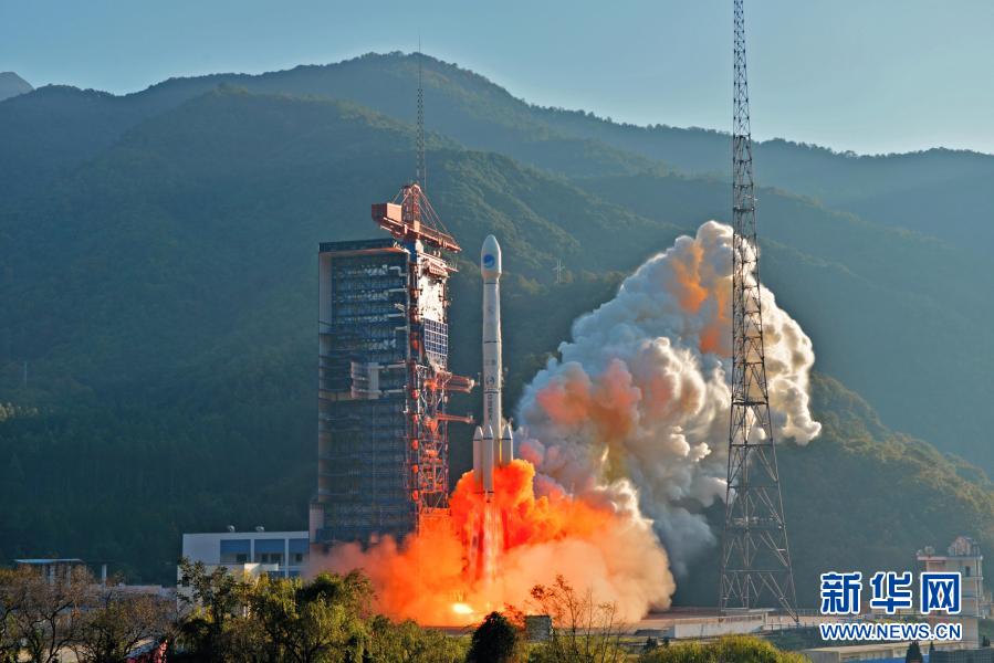 我國在西昌衛(wèi)星發(fā)射中心用長征三號乙運載火箭(及配套遠征一號上面級),以“一箭雙星”方式成功發(fā)射第50、51顆北斗導(dǎo)航衛(wèi)星(2019年11月23日攝)。新華社發(fā)(郭文彬 攝)