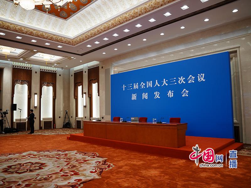 十三屆全國人大三次會議新聞發(fā)布會即將開始。中國網(wǎng) 楊佳 攝