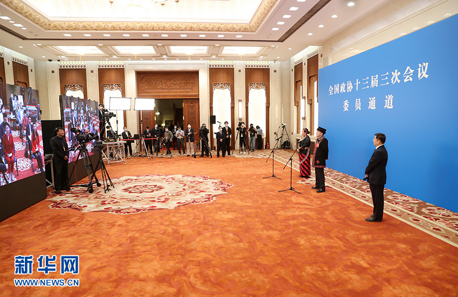 5月24日,在北京人民大會堂新聞發布廳舉行全國政協十三屆三次會議第二場“委員通道”采訪活動。這是“委員通道”采訪活動現場。 新華網 翟子赫 攝