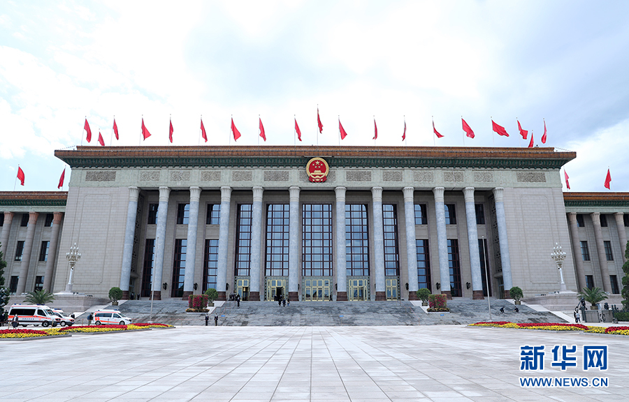 5月25日下午,第十三屆全國人民代表大會第三次會議在人民大會堂舉行第二次全體會議。新華網進行現場直播。圖為人民大會堂外景。新華網 翟子赫 攝