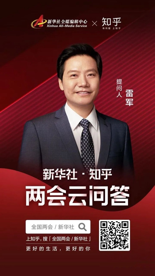 今年全國兩會期間,新華社聯合知乎發起《兩會云問答》,鐘南山、雷軍、姚明、張文宏、雷佳、郎朗首次跨界“云”問答。企業家雷軍的問題是:未來幾年,科技領域會有哪些重大突破?將為哪些行業帶來新機遇?