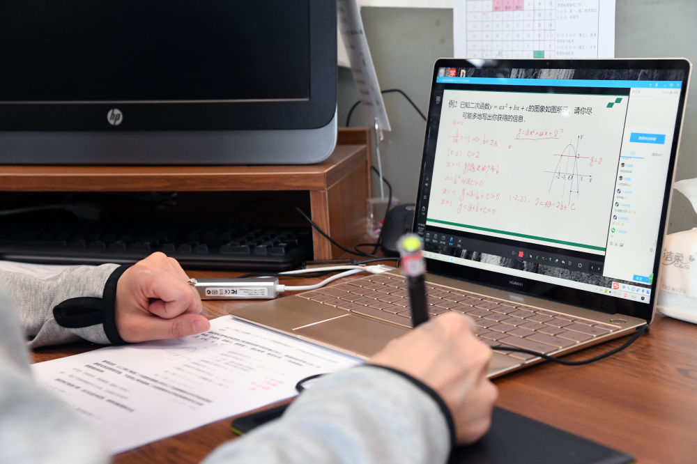 4月14日,在北京科技大學附屬中學,學生在線上初三數學課。新華社記者 任超 攝