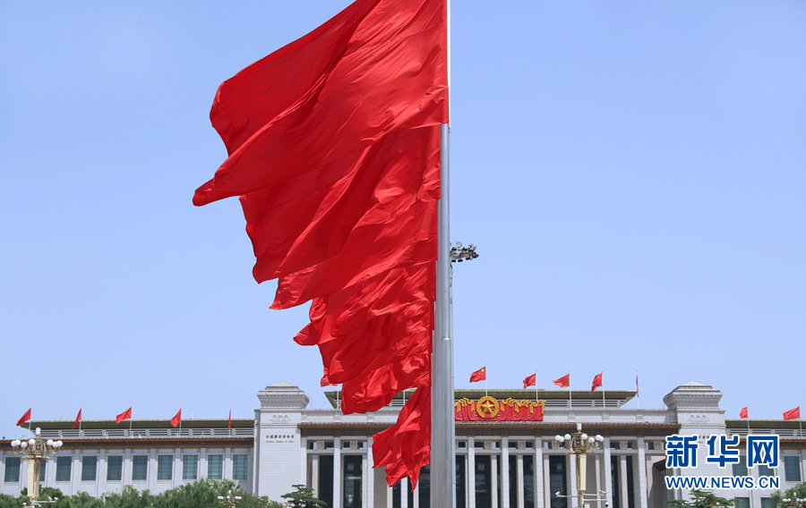 天安門廣場上紅旗飄揚-新華網