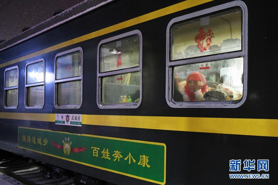 2020年1月10日,由蘭州開往武威南的7505次列車停靠在永登站,一名旅客望向窗外。由甘肅蘭州開往武威南的7505次列車是一列老式綠皮車,串聯(lián)起蘭州和武威兩座城市之間的十幾座小站。因?yàn)槠眱r(jià)便宜、乘坐方便,它成為沿線鄉(xiāng)村群眾進(jìn)城購物、售賣農(nóng)產(chǎn)品、探親訪友、外出打工的首選交通工具。