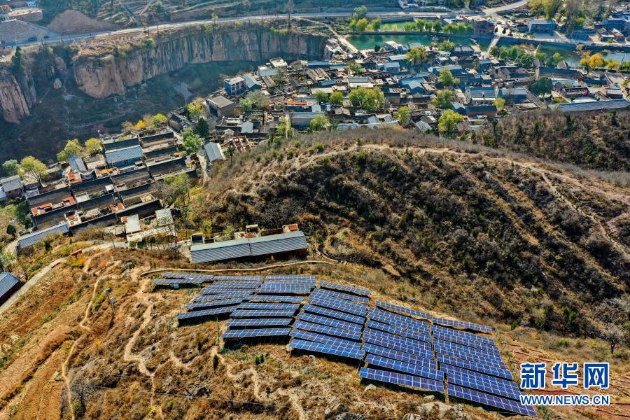 這是2020年11月11日拍攝的山西省平順縣虹霓村的光伏電站(無人機照片)。