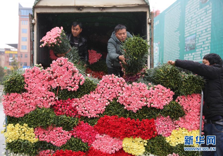 2月9日,商家在昆明斗南花卉市場準(zhǔn)備鮮花。新華社發(fā)(梁志強(qiáng) 攝)