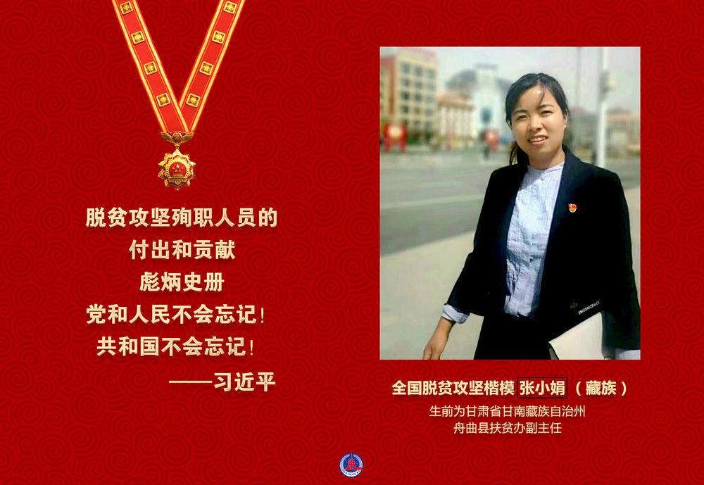 張小娟同志是在習(xí)近平新時(shí)代中國特色社會(huì)主義思想指引下成長起來的優(yōu)秀共產(chǎn)黨員,是在脫貧攻堅(jiān)一線不懈奮斗的優(yōu)秀青年干部。2019年10月7日,在舟曲縣貧困鄉(xiāng)鎮(zhèn)脫貧攻堅(jiān)驗(yàn)收結(jié)束返回縣城途中因交通事故不幸殉職,年僅34歲。