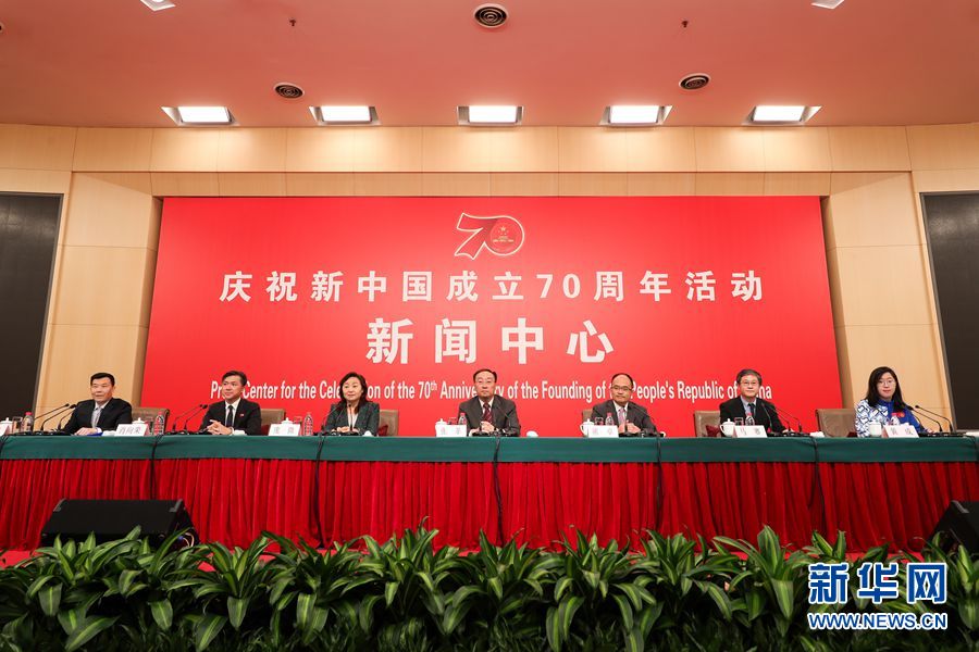 9月25日,慶祝中華人民共和國(guó)成立70周年活動(dòng)新聞中心在北京梅地亞中心二層新聞發(fā)布廳舉辦第二場(chǎng)專題集體采訪活動(dòng)。圖為新聞發(fā)布會(huì)現(xiàn)場(chǎng)。新華網(wǎng)記者 焦鵬 攝