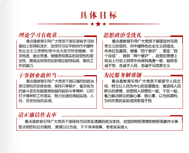 • 主題教育是以習(xí)近平同志為核心的黨中央作出的重大部署,領(lǐng)導(dǎo)干部要提升政治站位,擔(dān)負(fù)好領(lǐng)導(dǎo)指導(dǎo)責(zé)任,抓好所屬單位黨組織的主題教育。對(duì)消極對(duì)待、敷衍應(yīng)付的,要嚴(yán)肅批評(píng);對(duì)走形變樣、問題嚴(yán)重的,要給予組織處理,切實(shí)解決執(zhí)行能力不強(qiáng)、執(zhí)行底氣不夠等問題,確保主題教育取得實(shí)實(shí)在在成效。 [詳細(xì)]