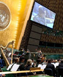 國(guó)東部時(shí)間5月20日下午,紐約曼哈頓,聯(lián)合國(guó)總部大會(huì)廳。一場(chǎng)中美軍樂(lè)團(tuán)聯(lián)合音樂(lè)會(huì)隆重舉行。首次走進(jìn)聯(lián)合國(guó)的中國(guó)人民解放軍軍樂(lè)團(tuán),演奏了《歌唱祖國(guó)》為音樂(lè)會(huì)“壓軸”。激昂的樂(lè)曲在這里回蕩,難忘的歷史在這里流淌…… 詳細(xì)內(nèi)容>>