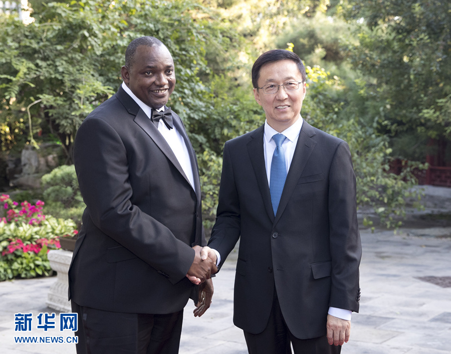 9月6日,中共中央政治局常委、國務院副總理韓正在北京釣魚臺國賓館會見佛得角總理席爾瓦。 新華社記者 王曄 攝