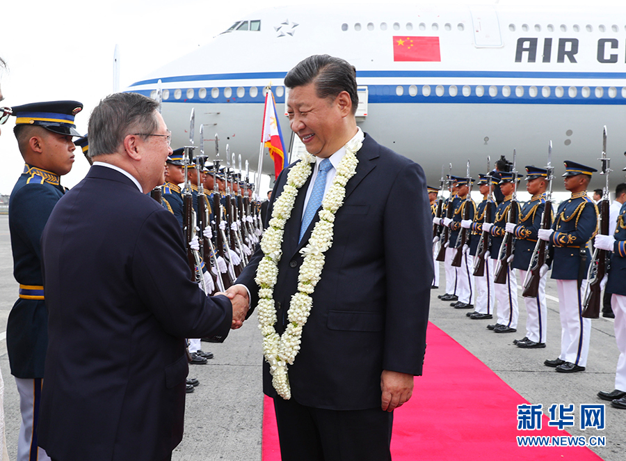 11月20日,國家主席習(xí)近平抵達(dá)馬尼拉,開始對菲律賓共和國進(jìn)行國事訪問。這是習(xí)近平在機(jī)場受到菲律賓政府高級官員熱情迎接。 新華社記者 黃敬文 攝