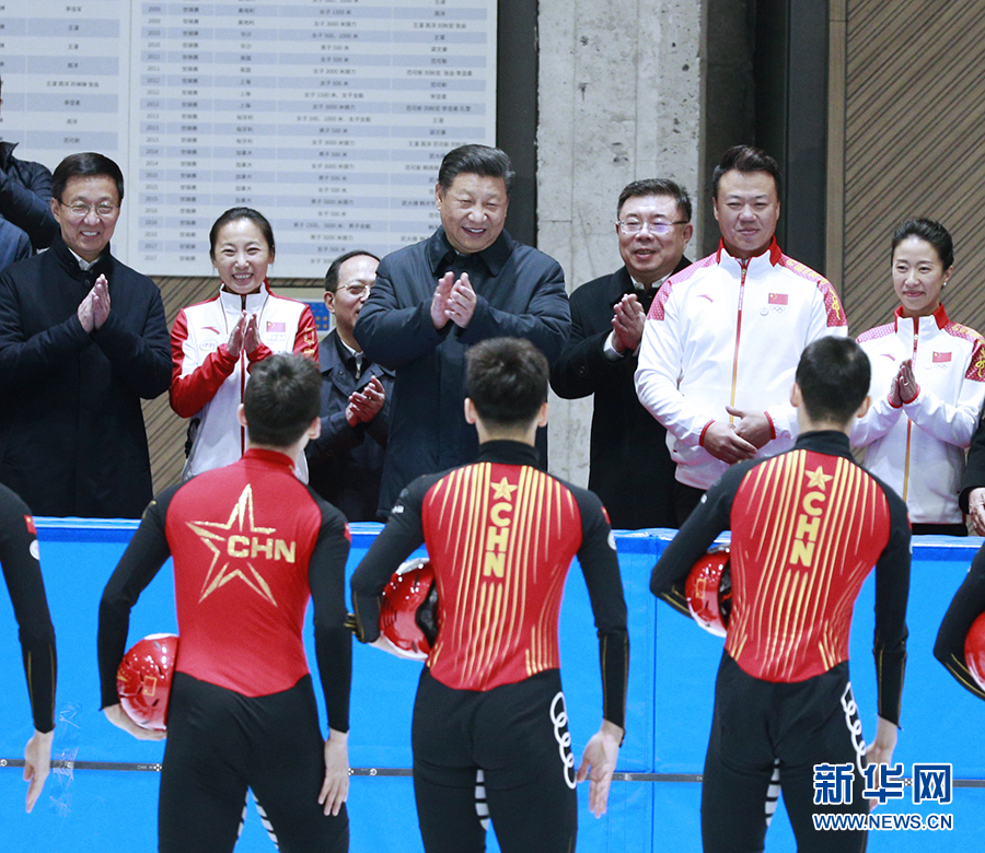 2月1日,中共中央總書記、國家主席、中央軍委主席習近平在北京看望慰問基層干部群眾,考察北京冬奧會、冬殘奧會籌辦工作。這是1日下午,習近平在國家冬季運動訓練中心察看國家速滑隊訓練備戰情況。 新華社記者 劉彬 攝
