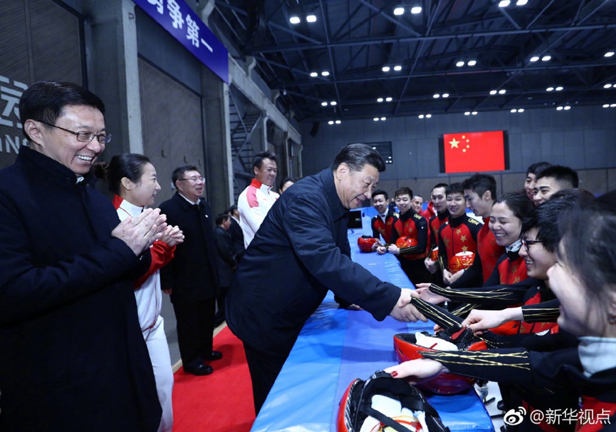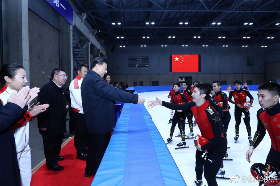 在位于北京石景山首鋼園區(qū)的國家冬季運動訓(xùn)練中心,習(xí)近平先后走進速滑館和冰壺館,看望慰問備戰(zhàn)的運動員、教練員。“訓(xùn)練強度大不大?”“從事這項運動多長時間啦?”“生活上有哪些困難?”“國際上哪些競爭對手最強?”總書記問得仔細。得知運動員們充滿信心,總書記十分欣慰。他勉勵大家說,舉辦北京冬奧會、冬殘奧會,中國冰雪運動將會上一個大臺階。這是百年不遇的歷史機遇,會應(yīng)運而生一批高水平優(yōu)秀運動員。習(xí)近平強調(diào),體育強則國家強,國家強則體育強。通過北京冬奧會把我國冬季冰雪運動發(fā)展起來,這就是我們的希望。(記者張曉松、鞠鵬、謝環(huán)馳、劉彬)?