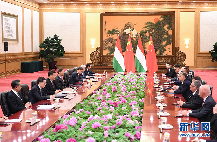 習(xí)近平指出,2017年,我和總理先生共同宣布兩國(guó)建立全面戰(zhàn)略伙伴關(guān)系,中匈關(guān)系進(jìn)入“換擋提速”的歷史新階段。今年是中匈建交70周年。中方期待同匈方一道努力,推動(dòng)兩國(guó)全面戰(zhàn)略伙伴關(guān)系邁向新高度。雙方要保持高層交往熱度,做好政治引領(lǐng);提升互尊互信水平,深化戰(zhàn)略認(rèn)同;加大務(wù)實(shí)合作力度,實(shí)現(xiàn)互利共贏;拓寬人文交流廣度,促進(jìn)民心相通。下階段,我們要落實(shí)好匈塞鐵路等“一帶一路”框架內(nèi)合作,爭(zhēng)取更多實(shí)質(zhì)成果。中國(guó)-中東歐合作是中歐關(guān)系重要組成部分,希望匈方為此發(fā)揮更大作用。