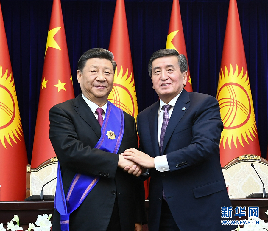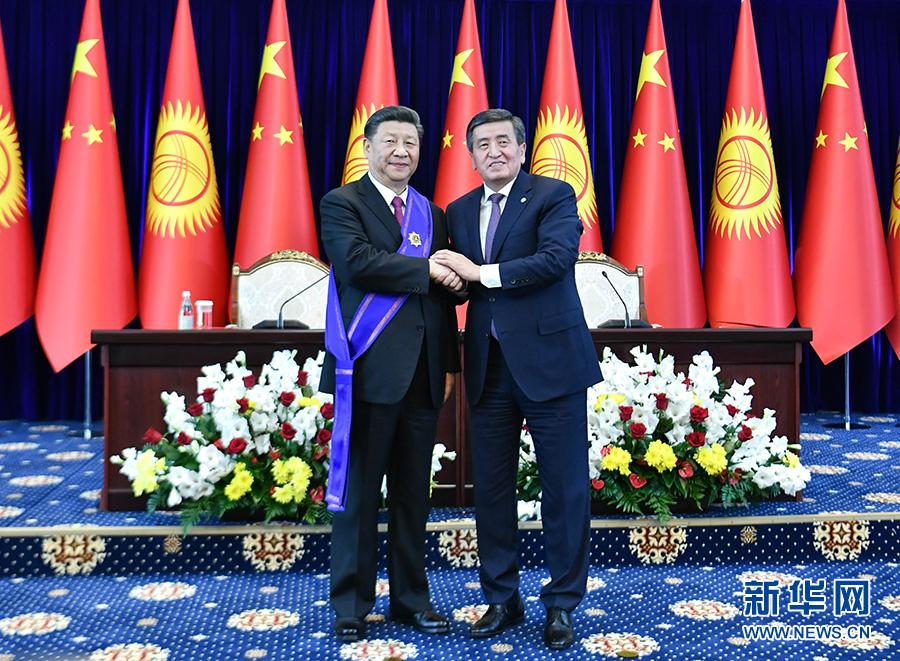 新華社比什凱克6月13日電(記者鄭曉奕 劉暢)國家主席習近平13日在比什凱克出席儀式,接受吉爾吉斯斯坦總統(tǒng)熱恩別科夫授予“瑪納斯”一級勛章。