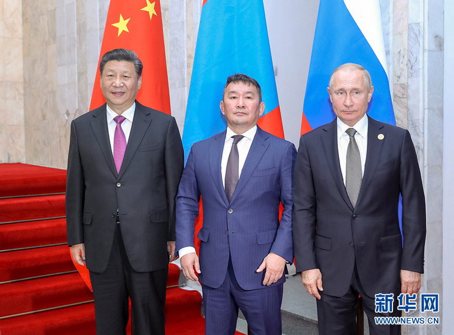 習(xí)近平指出,今年中方將分別同俄蒙兩方慶祝建交70周年,中俄蒙三方合作將迎來新的機(jī)遇。在當(dāng)前國際上保護(hù)主義、單邊主義抬頭背景下,三方要堅(jiān)定促進(jìn)區(qū)域合作、實(shí)現(xiàn)共同發(fā)展的目標(biāo),圍繞三國發(fā)展戰(zhàn)略對(duì)接這條主線,推進(jìn)各領(lǐng)域全面合作,共同釋放三國維護(hù)多邊主義、打造開放型世界經(jīng)濟(jì)的積極信號(hào)。