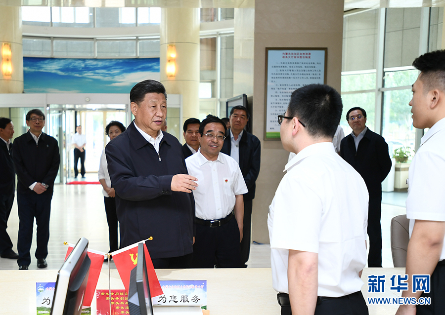 7月15日至16日,中共中央總書記、國家主席、中央軍委主席習近平在內蒙古考察并指導開展“不忘初心、牢記使命”主題教育。這是16日上午,習近平在內蒙古自治區自然資源廳自然資源政務大廳同工作人員交談,了解開展主題教育和落實便捷高效政務服務等情況。 新華社記者 謝環馳 攝