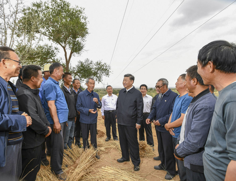 21日,正在甘肅考察工作的習(xí)近平總書(shū)記來(lái)到八步沙林場(chǎng),實(shí)地察看當(dāng)?shù)刂紊吃炝帧⑸鷳B(tài)保護(hù)等情況。