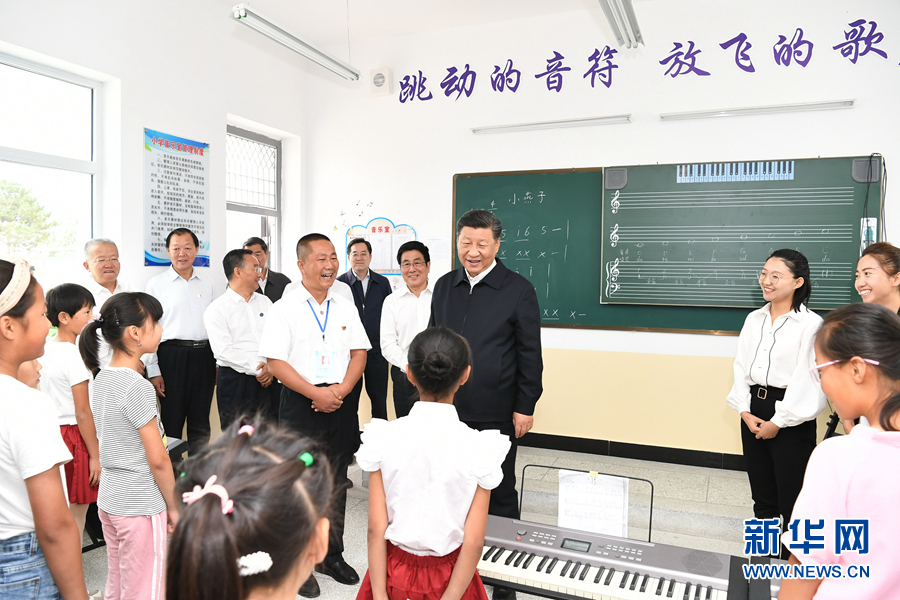 8月19日至22日,中共中央總書記、國家主席、中央軍委主席習(xí)近平在甘肅考察。這是21日上午,習(xí)近平在武威市古浪縣黃花灘生態(tài)移民區(qū)富民新村富民小學(xué)的音樂教室,認真觀看正在進行的音樂課教學(xué)。 新華社記者 謝環(huán)馳 攝