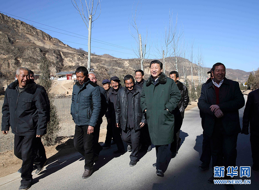 2015年2月13日,農歷羊年春節來臨之際,習近平在陜西延安市延川縣文安驛鎮梁家河村調研時同村民邊走邊聊。新華社記者 蘭紅光 攝