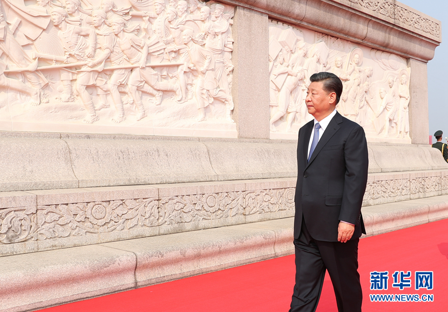 9月30日上午,習近平、李克強、栗戰書、汪洋、王滬寧、趙樂際、韓正、王岐山等黨和國家領導人來到北京天安門廣場,出席烈士紀念日向人民英雄敬獻花籃儀式。 新華社記者 丁海濤 攝