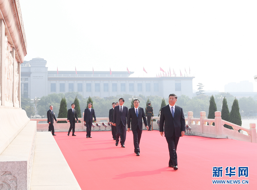 9月30日上午,習近平、李克強、栗戰書、汪洋、王滬寧、趙樂際、韓正、王岐山等黨和國家領導人來到北京天安門廣場,出席烈士紀念日向人民英雄敬獻花籃儀式。儀式前,習近平等來到毛主席紀念堂瞻仰毛澤東同志遺容。新華社記者 鞠鵬 攝