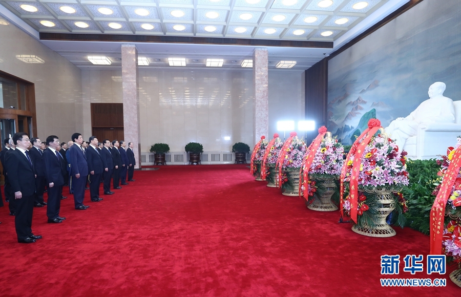 敬獻花籃儀式前,習近平、李克強、栗戰書、汪洋、王滬寧、趙樂際、韓正、王岐山等領導同志來到毛主席紀念堂。北大廳內,中共中央,全國人大常委會,國務院,全國政協,中央軍委,各民主黨派、全國工商聯和無黨派愛國人士敬獻的花籃擺放在毛澤東同志坐像正前方。習近平等向毛澤東同志坐像三鞠躬,隨后來到瞻仰廳,瞻仰毛澤東同志遺容,表達對毛澤東同志等老一輩革命家的深切緬懷。