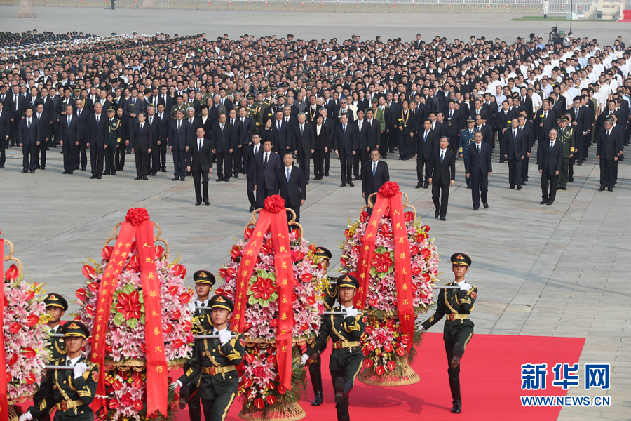 9月30日上午,習近平、李克強、栗戰書、汪洋、王滬寧、趙樂際、韓正、王岐山等黨和國家領導人來到北京天安門廣場,出席烈士紀念日向人民英雄敬獻花籃儀式。 新華社記者 姚大偉 攝