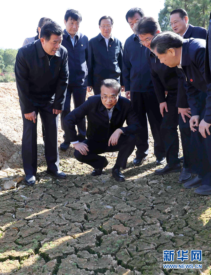 11月14日至15日,中共中央政治局常委、國務院總理李克強在江西景德鎮、南昌考察。這是11月14日,李克強在景德鎮山田水庫了解旱情。 新華社記者 劉衛兵 攝
