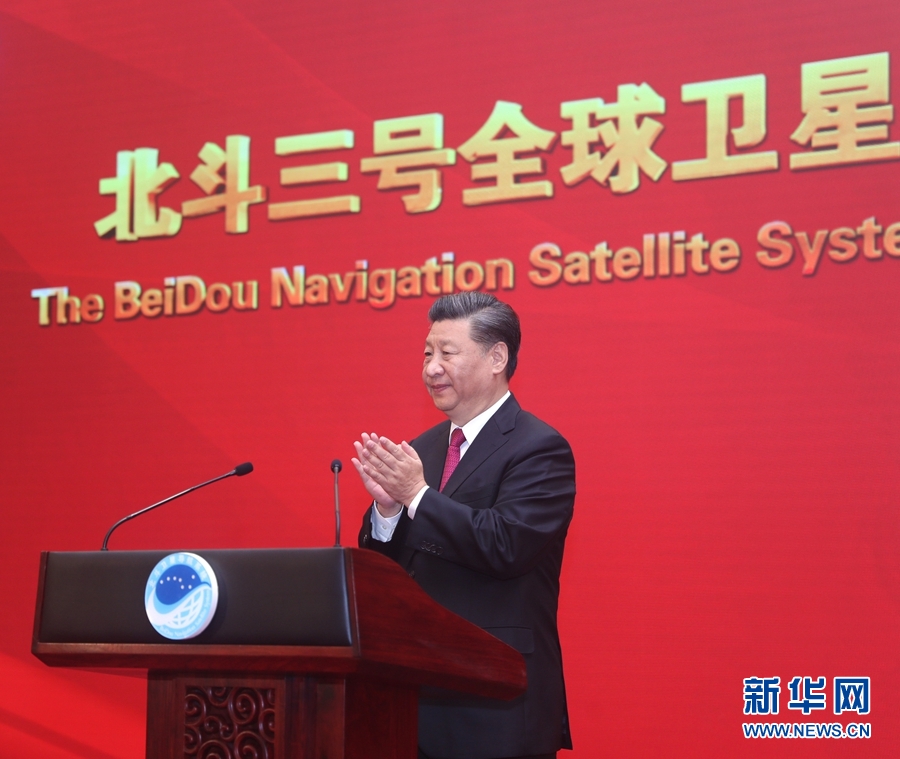 10時(shí)48分,習(xí)近平走上主席臺(tái),宣布:“北斗三號(hào)全球衛(wèi)星導(dǎo)航系統(tǒng)正式開通!”全場響起經(jīng)久不息的熱烈掌聲。