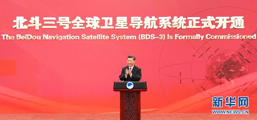 7月31日上午,北斗三號(hào)全球衛(wèi)星導(dǎo)航系統(tǒng)建成暨開通儀式在北京舉行。中共中央總書記、國家主席、中央軍委主席習(xí)近平出席儀式,宣布北斗三號(hào)全球衛(wèi)星導(dǎo)航系統(tǒng)正式開通。 新華社記者 李響 攝