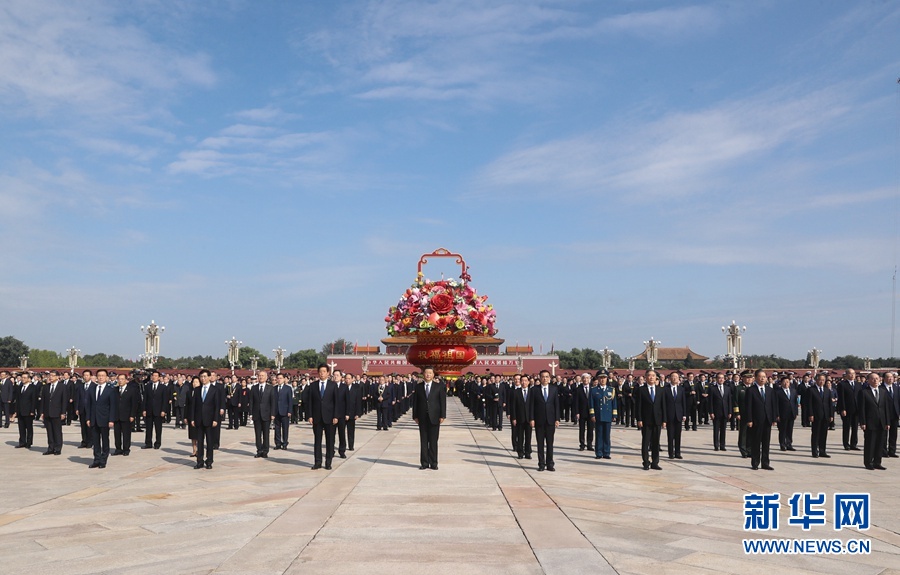 9月30日上午,黨和國家領導人習近平、李克強、栗戰書、汪洋、王滬寧、趙樂際、韓正、王岐山等來到北京天安門廣場,出席烈士紀念日向人民英雄敬獻花籃儀式。 新華社記者 謝環馳 攝